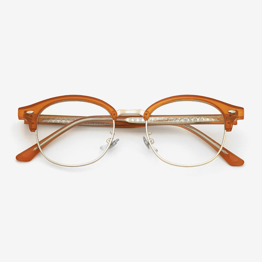 오렌지 투명&라이트골드 메탈 하금테 KBT98316 C3 49mm 라운즈베이직 안경테