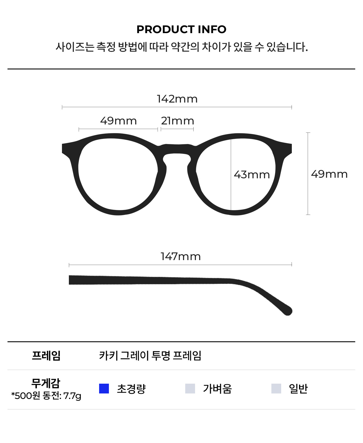 카키그레이투명 B5317 C5 라운즈 베이직 안경테