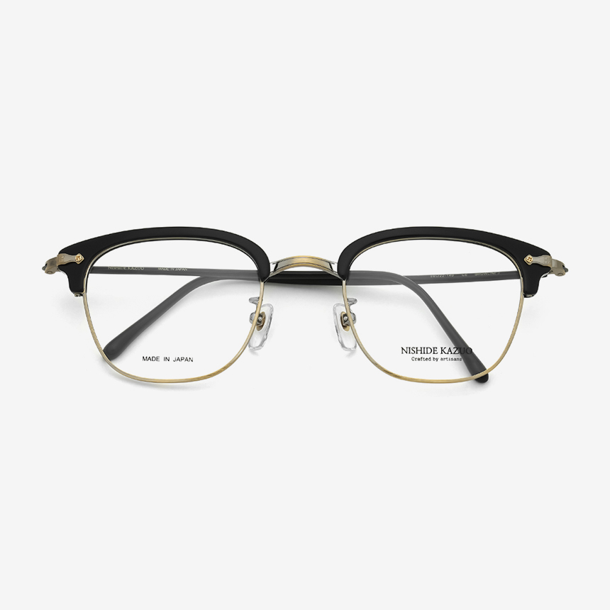 블랙&엔틱 골드 메탈 하금테 BROWLINE3 C6 니시데카즈오 브로우라인3 안경테